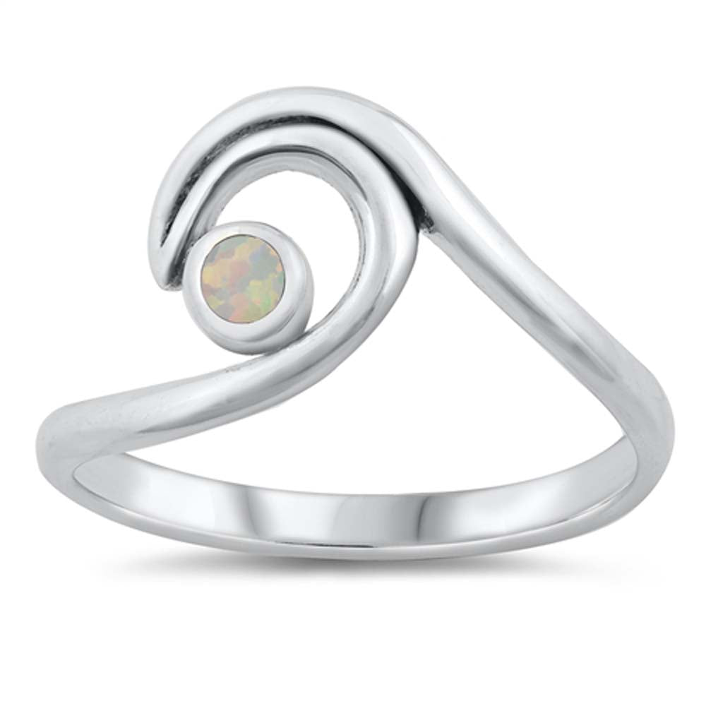 Wholesale Sterling Silver Wave White Lab Opal Ring