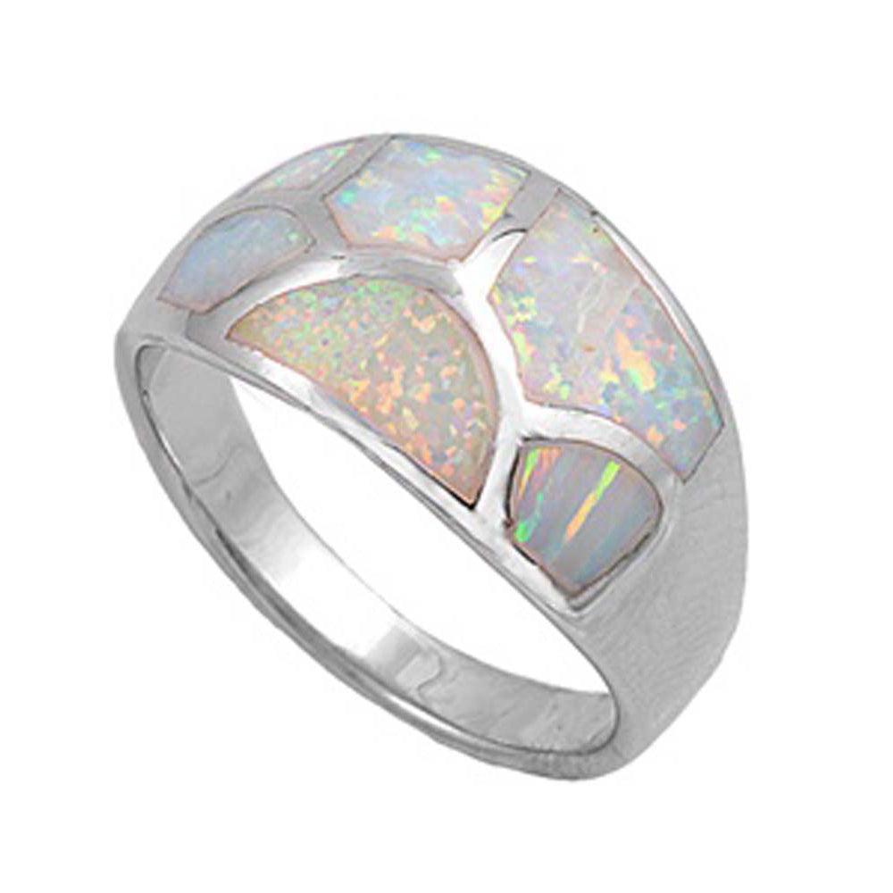 Sterling Silver Wedding Band Pink Lab Opal Rings With CZ StonesAnd Face Height 12mmAnd Band Width 4mm