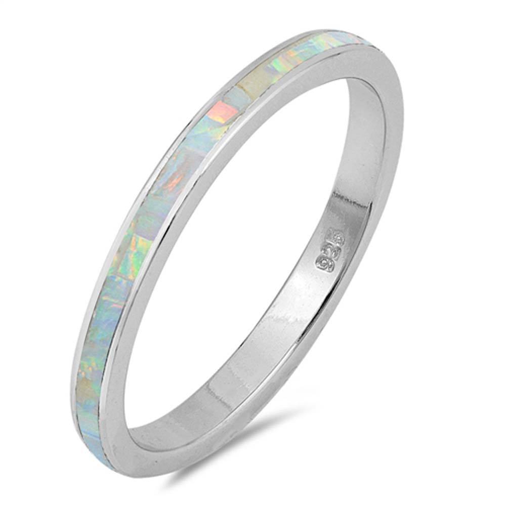 Sterling Silver Wedding Band Shape White Lab Opal Rings And Face Height 3mm