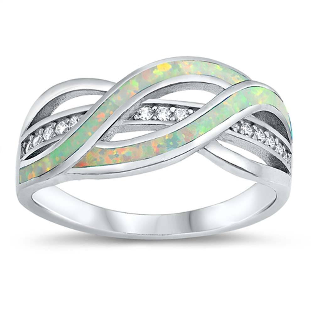 Sterling Silver White Lab Opal and Clear CZ Ring