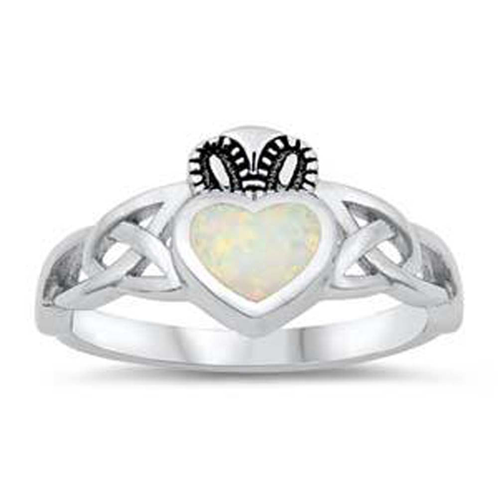 Sterling Silver White Lab Opal Claddagh Ring