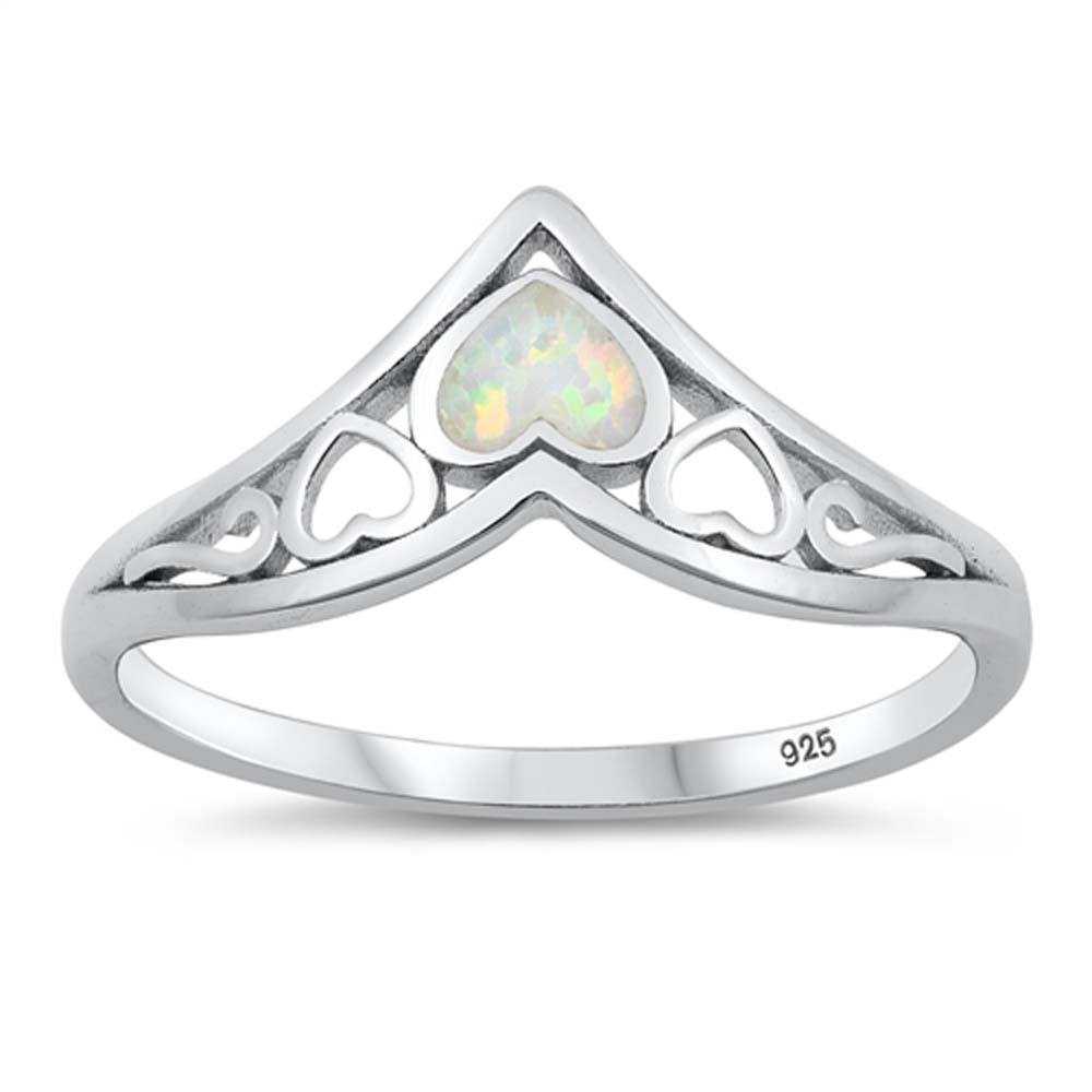 Wholesale Sterling Silver White Lab Opal Hearts Ring