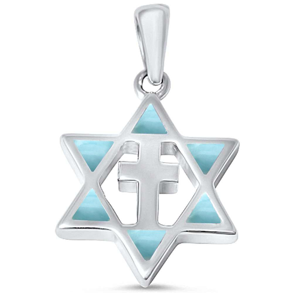 Sterling Silver Natural Larimar Star Of David With Cross Pendant