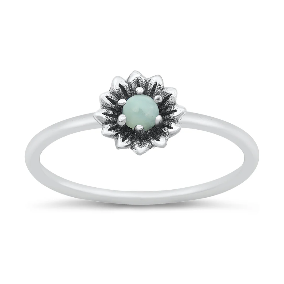 Sterling Silver Oxidized Flower Larimar Ring