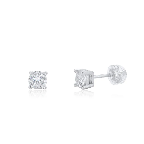 Wholesale Sterling Silver Rhodium Plated Round Moissanite Studded Stud Earring Dimensions-5mm