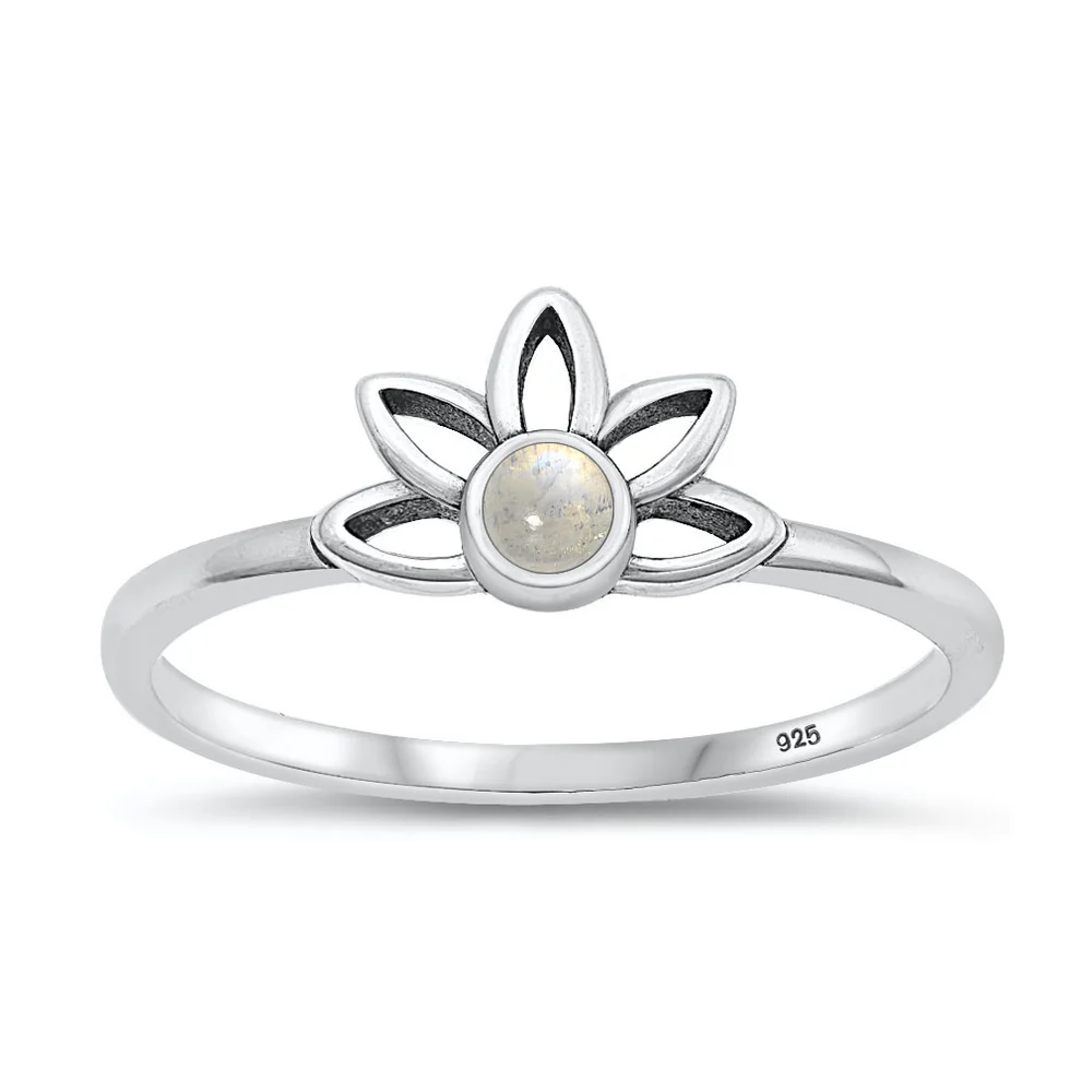 Sterling Silver Oxidized 7.6mm Moonstone Stone Ring