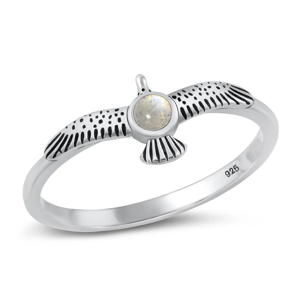 Sterling Silver Oxidized Eagle Moonstone Stone Ring