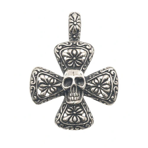 Wholesale Sterling Silver Oxidized Gothic Skull Cross Pendant Dimensions-32mm