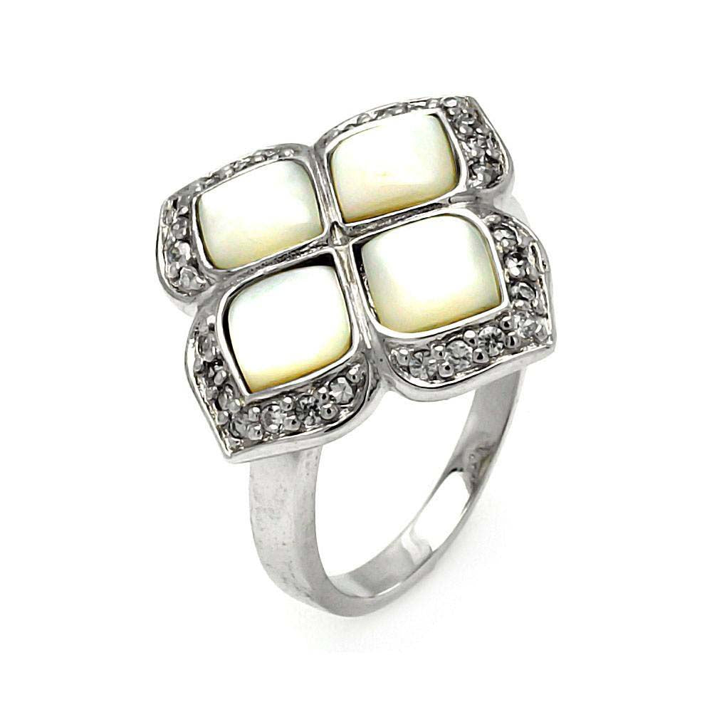 Wholesale Sterling Silver Mother of Pearl Flower Design Inlaid with Clear Czs RingAnd Ring Width of 21MM