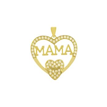 Sterling Silver Gold Plated Mama Heart CZ Pendant
