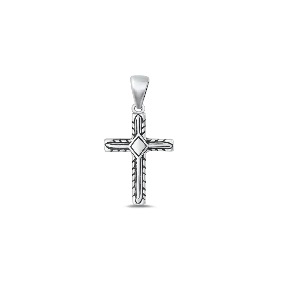 Wholesale Sterling Silver Oxidized 15.7mm Cross Pendant Face Height-15.7mm