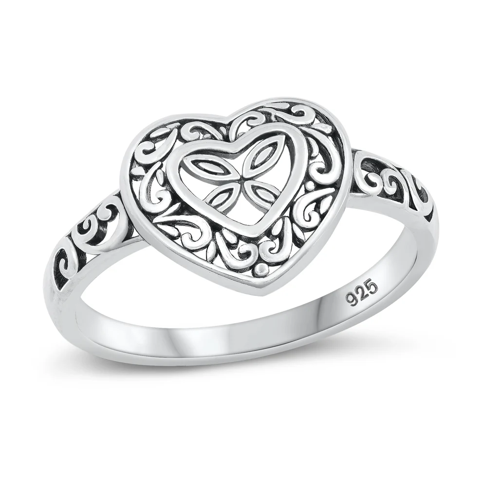 Wholesale Sterling Silver Oxidized Heart Ring Face Height-12mm