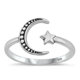Sterling Silver Oxidized Moon And Star Ring