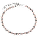 Sterling Silver Rhodium Plated Pink Crystal And Diamond Cut Bead Bracelet