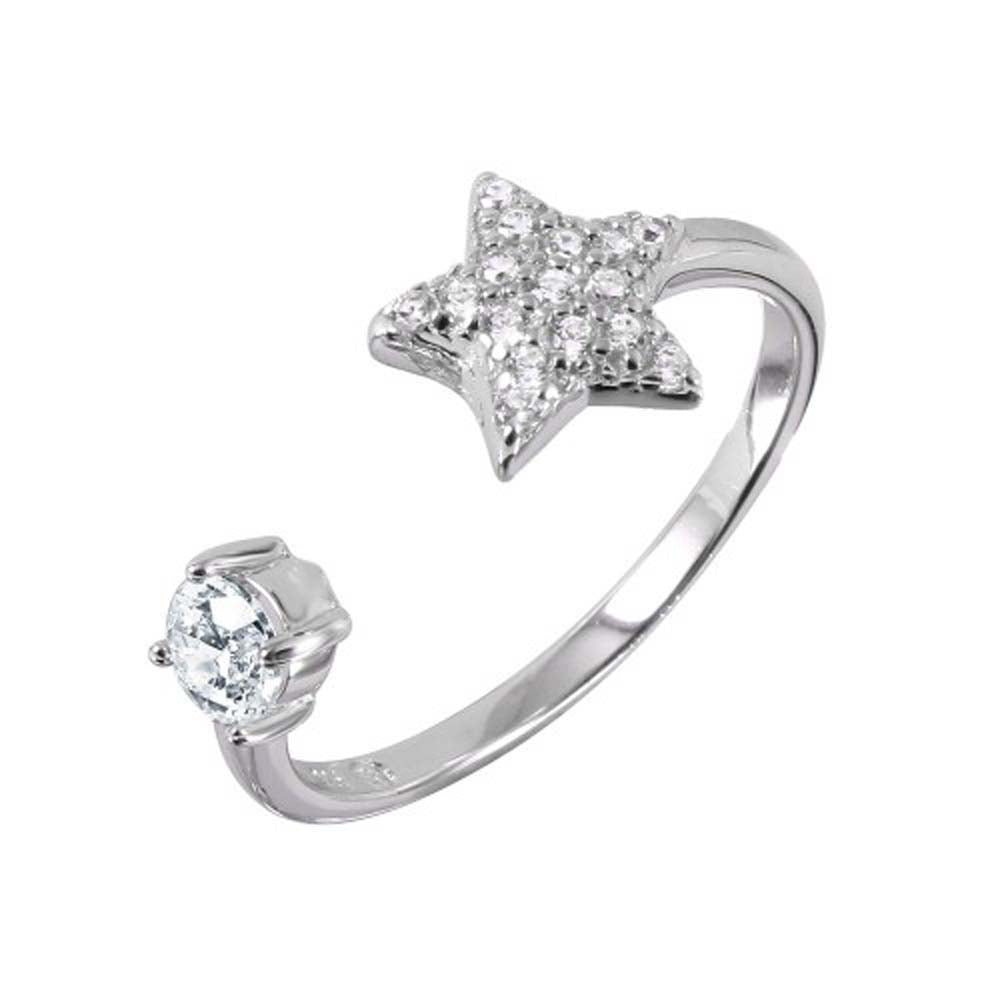 Wholesale Sterling Silver Rhodium Plated Star Open Shaped Ring With CZ Stones