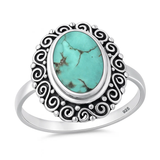 Sterling Silver Oxidized And Polished 20mm Bali Style Genuine Turquoise Stone Ring