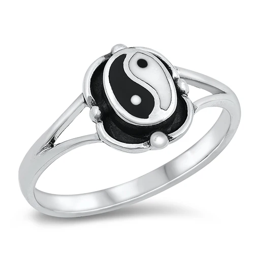 Wholesale Sterling Silver Oxidized Yin Yang Stone Ring Face Height-10mm