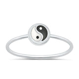 Sterling Silver Polished Round Yin Yang Stone Ring