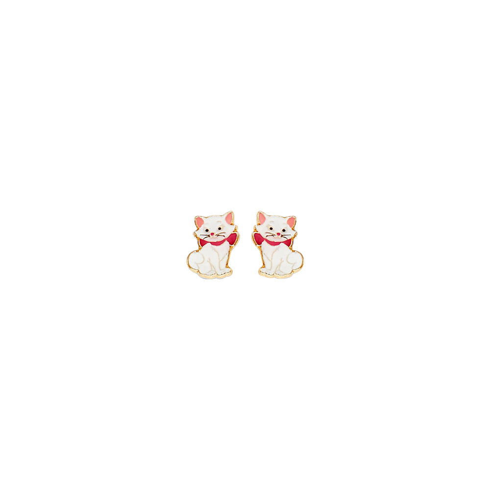 14K Yellow Gold Cat Stud Earrings
