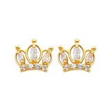 14K Yellow Gold 10mm Crown CZ Stud Earrings - Screw Back