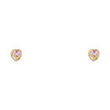 Wholesale 14k Yellow Gold 3mm Heart Pink CZ October Birth Stone Stud Earrings With Screw Back