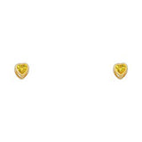 14k Yellow Gold 3mm Heart Topaz CZ November Birth Stone Stud Earrings With Screw Back