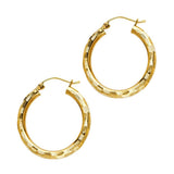 Wholesale 14K Yellow Gold 3mm Medium Polished Fancy Diamond-Cut Hinge-Notch Post And Latch Backing Hoop Earrings