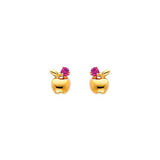 14K Yellow Gold 4mm Apple CZ Stud Earrings - Screw Back
