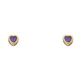 14k Yellow Gold 4mm Heart Amethyst CZ February Birth Stone Stud Earrings With Screw Back