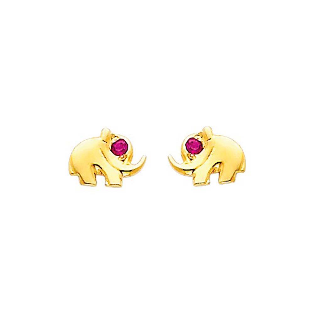14K Yellow Gold 7mm Elephant CZ Stud Earrings - Screw Back