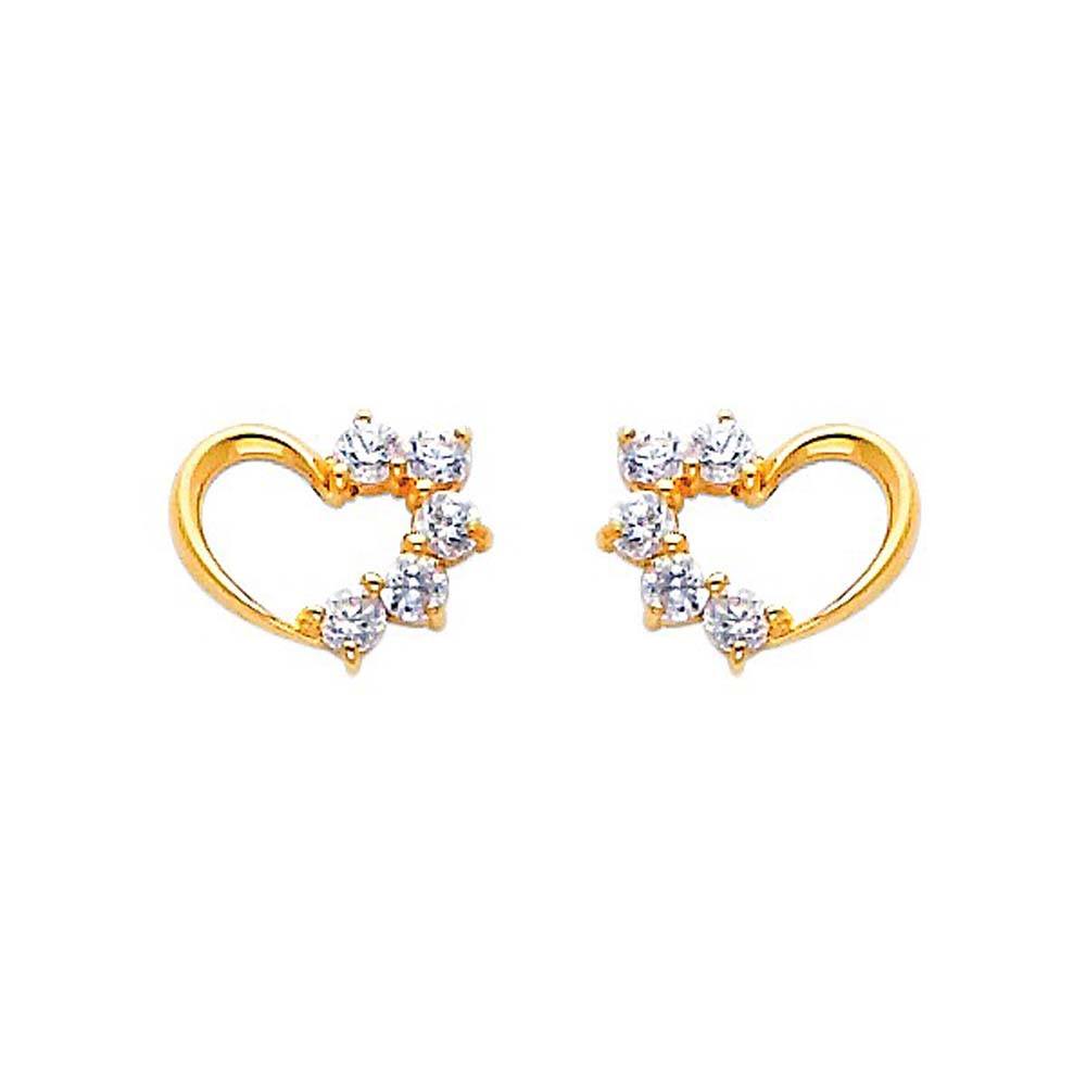 Wholesale 14k Yellow Gold 8mm Heart CZ Stud Earrings With Screw Back
