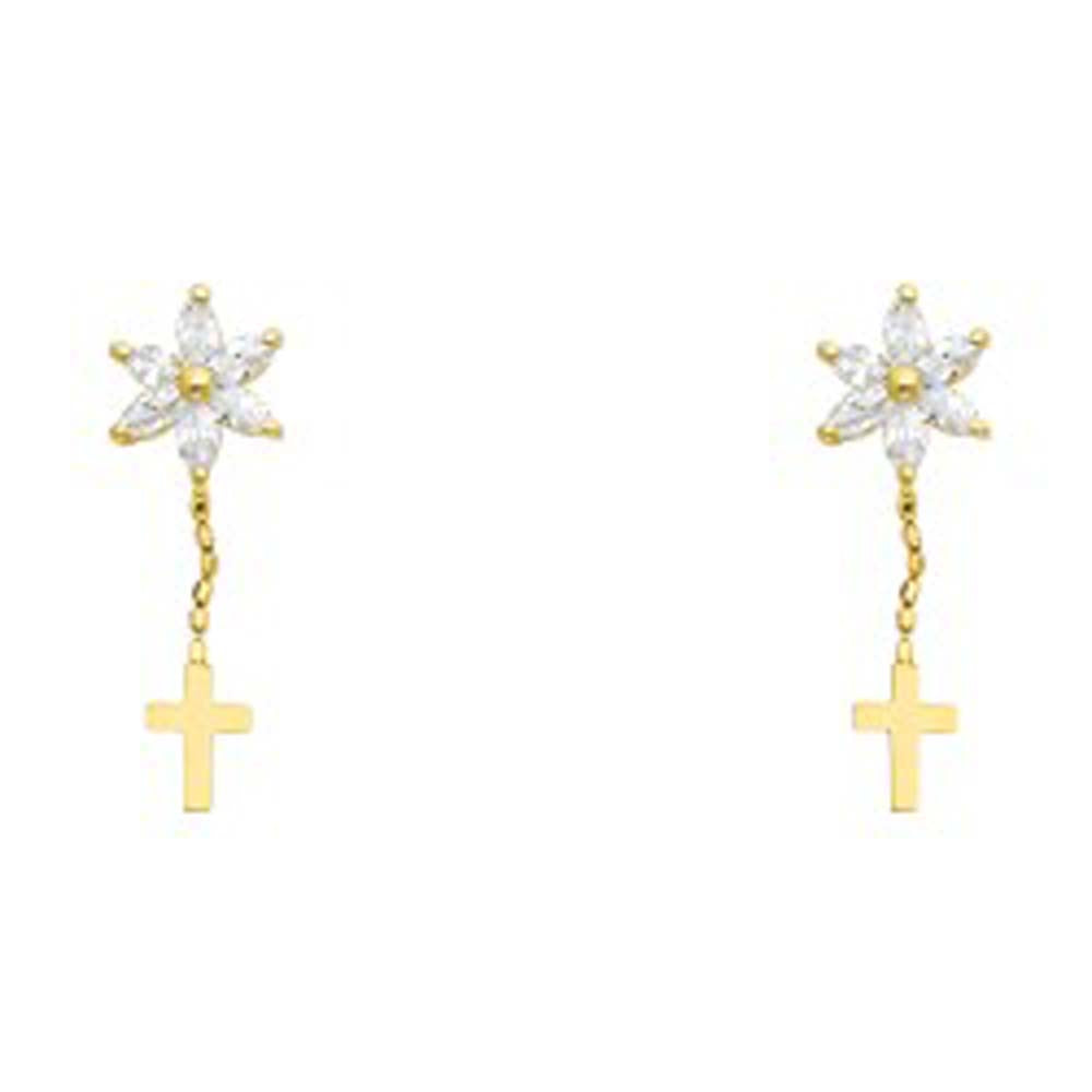 14k Yellow Gold Flower And Cross CZ Assorted Stud Earrings With Screw Back