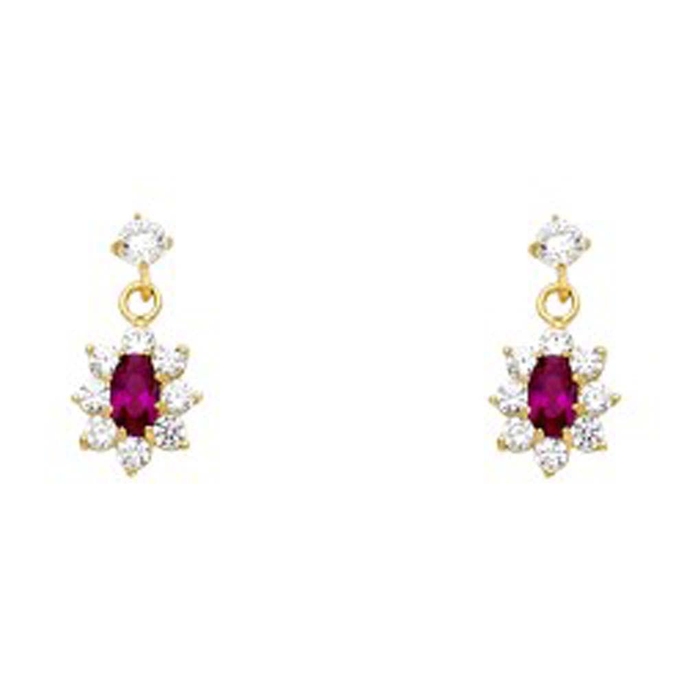 Wholesale 14k Yellow Gold Flower With Ruby And CZ Assorted Stud Earrings With Screw Back