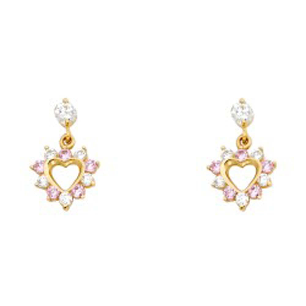 14k Yellow Gold Heart Pink And Clear CZ Assorted Stud Earrings With Screw Back