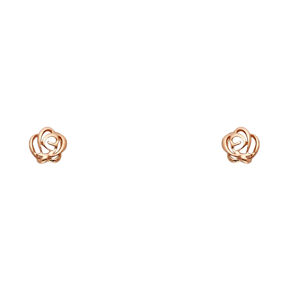 14k Yellow Gold Rose CZ Assorted Stud Earrings With Screw Back