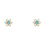 Wholesale 14k Yellow Gold Star Blue Zircon CZ December Birth Stone Stud Earrings With Screw Back