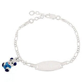 Italian Sterling Silver Figaro Dangle Teddy Bear Baby ID Bracelet