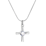 Wholesale Stelluxe Stainless Steel Color PVD Cross White Zirconia Round Snake Chain Necklace Weight-5.5grams, Pendant Width-20.8x27.5mm, Chain Length-40+5cm