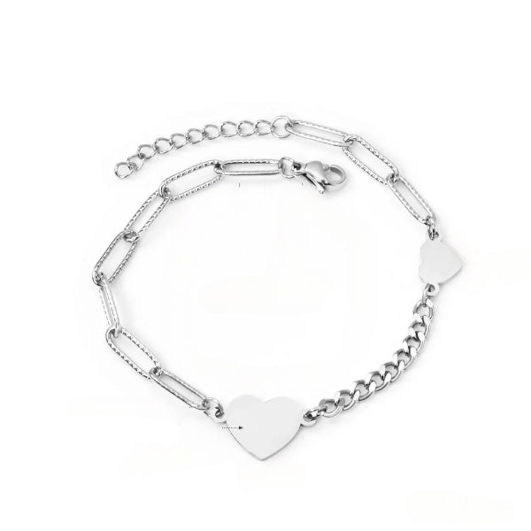 Wholesale Stelluxe Stainless Steel Color PVD Heart Shape Charms Bracelet Big Heart Width-12x11mm, Small Heart Width-8x7mm, Length-18+3cm, Thickness-1mm
