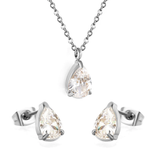 Wholesale Stelluxe Stainless Steel Color PVD Teardrop Cubic Zirconia Cross Chain Jewelry Set Weight-4grams, Pendant Width-6.1x9.4mm, Earrings Width-6.1x9.4mm, Chain Length-40+5cm