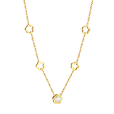 Stelluxe Stainless Steel Gold Color PVD 4 Hollow Peach Blossoms And 1 Peach Blossom With White Shell Necklace