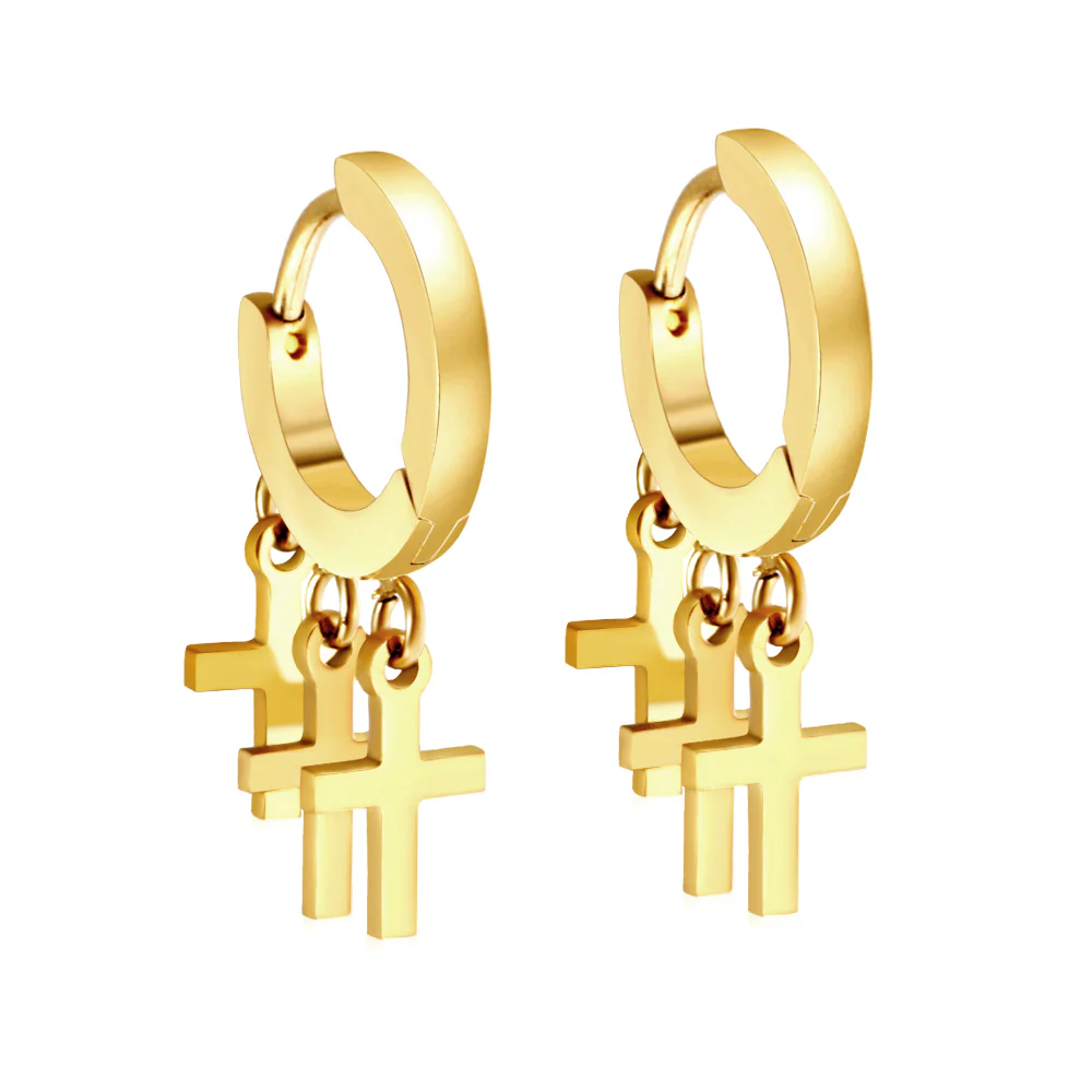Wholesale Stelluxe Stainless Steel Gold Color PVD Circle With 3 Crosses Earrings Circle Width-2x13mm, Crosses Width-6x9.7mm