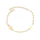 Stelluxe Stainless Steel Gold Color PVD Gold Beaded Crystal Cross And Jesus Charm Bracelet With Adjustable Extender Chain