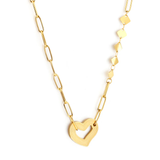 Stelluxe Stainless Steel Gold Color PVD Heart Shaped Cutout And 5 Square Necklace