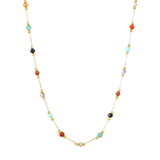 Wholesale Stelluxe Stainless Steel Gold Color PVD Small Steel And Multi Color Stones Square End Cap Necklace Weight-2.6grams, Multi Color Stone Width-3.2mm, Round Steel Width-2mm, Length-40+5cm