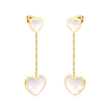 Wholesale Stelluxe Stainless Steel Gold Color PVD Korean Style Statement Drop Shell Heart Dangle Earrings Top Heart Width-10mm, Chain Width-29mm, Hanging Heart Width-15x14.5mm