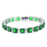 Sterling Silver 24CT Princess Cut Green Emerald Bracelet