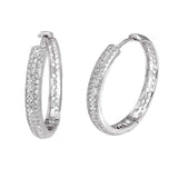 Sterling Silver 3 Line Cubic Zirconia Micro Pave Hoop Earrings