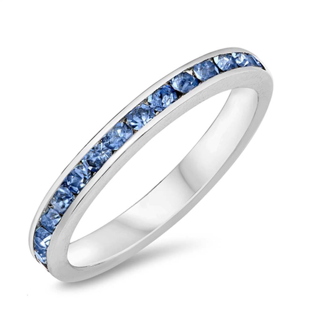 Wholesale Sterling Silver Blue Topaz Color Crystal Eternity Band Shaped CZ RingAnd Band Width 3mm