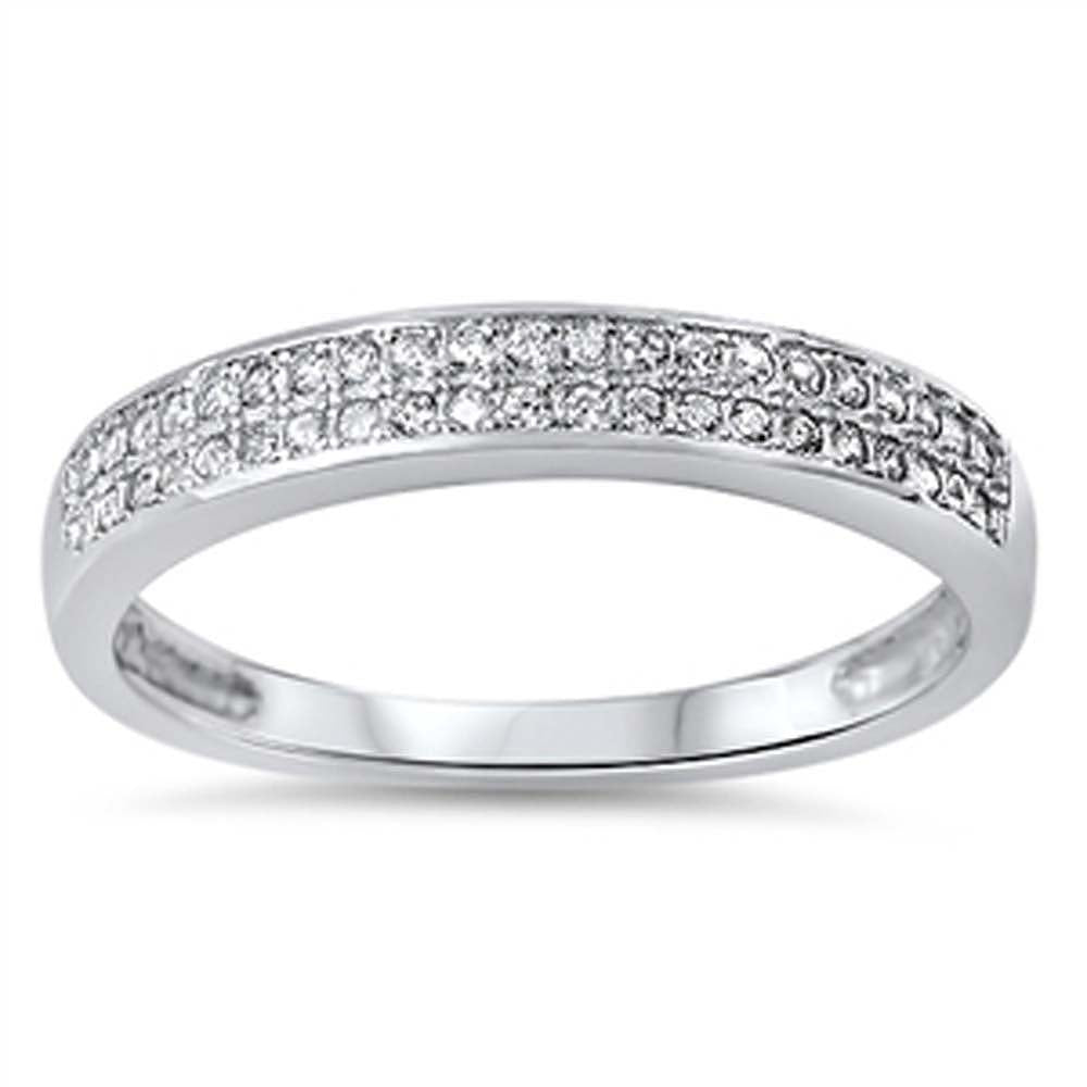 Sterling Silver Double Row Set with Micro Paved Clear Czs Eternity Band RingAnd Band Width of 3MM